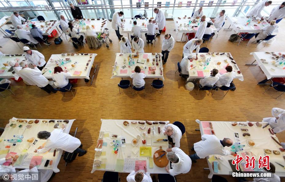 當(dāng)?shù)貢r(shí)間2018年2月28日,德國(guó)愛(ài)爾福特,當(dāng)?shù)嘏e辦香腸廚藝比賽。圖片來(lái)源:視覺(jué)中國(guó)