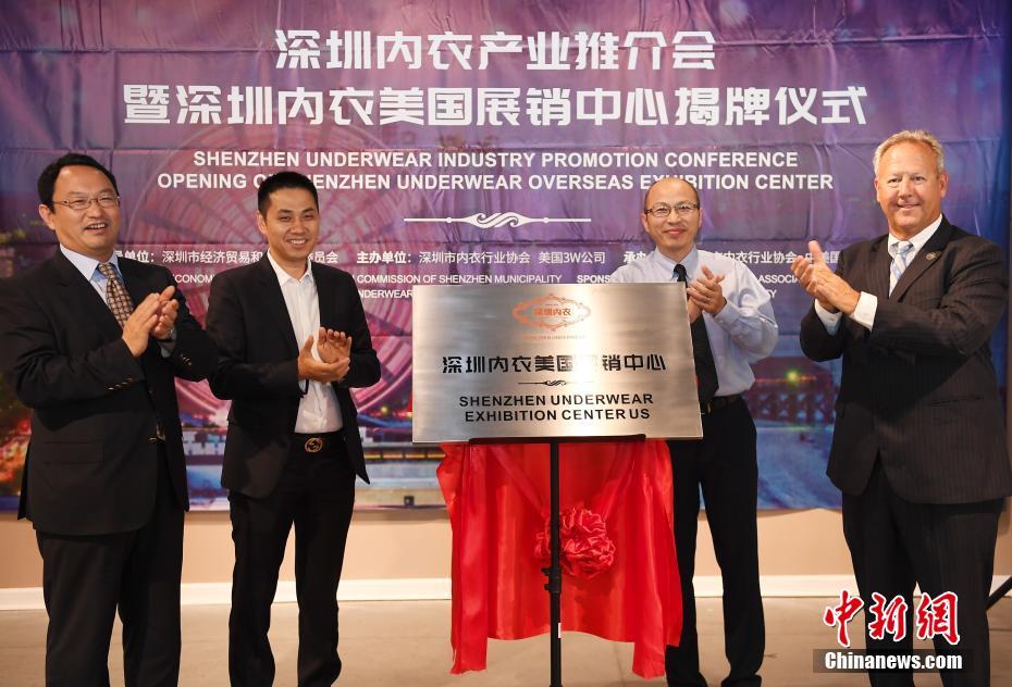 當地時間7月17日,深圳市內衣行業(yè)協(xié)會在中美國際(美東)創(chuàng)業(yè)港——默特爾比奇市Waccoma Center舉行深圳內衣產業(yè)推介會暨深圳內衣美國展銷中心揭牌儀式。中美國際(美東)創(chuàng)業(yè)港聯(lián)合深圳市內衣行業(yè)協(xié)會為深圳內衣品牌進駐美東市場搭建綠色通道和產業(yè)孵化平臺,采用“時尚秀+靜態(tài)展”的形式,促進中美內衣文化和時尚的交流。圖為霍里郡議會主席馬克先生Mark Lazrus(右一)、深圳市經濟貿易和信息化委員會副主任高林(左一)、美國3W公司董事長王為工(右二)、深圳市內衣行業(yè)協(xié)會常務副會長兼秘書長張峰偉(左二)出席揭牌儀式。中新社記者 陳文 攝