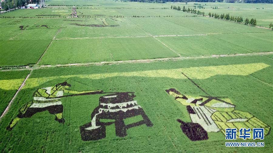 近日,在安徽省淮南市壽縣安豐塘水庫北堤的農田里,一幅幅生動的稻田畫呈現(xiàn)出別樣田園風景。