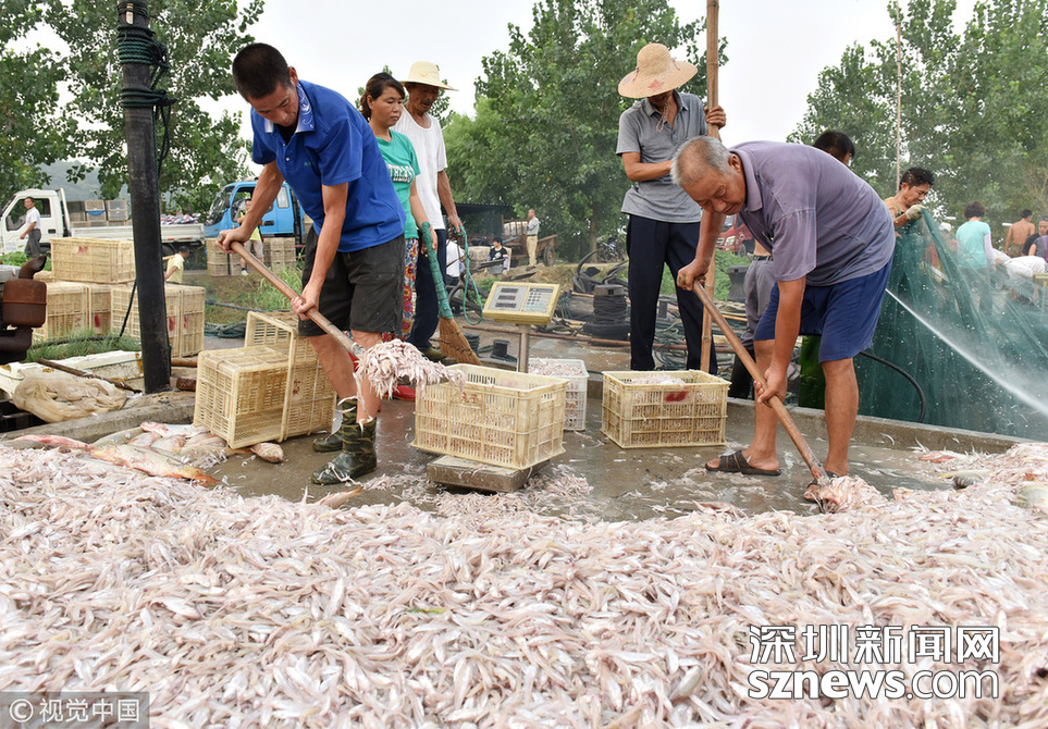 ?2018年8月12日,江蘇淮安洪澤湖全面開捕第四天,漁民進(jìn)入銀魚和毛刀魚捕撈高峰期。