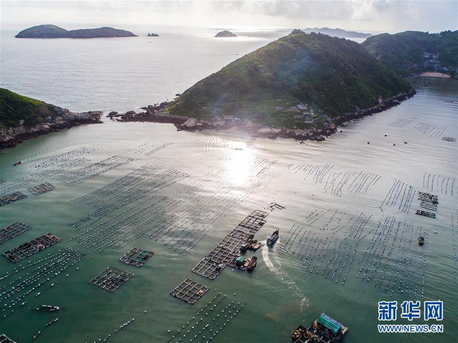 8月19日,空中俯瞰南麂島海域內(nèi)的“海上牧場”養(yǎng)殖區(qū)(無人機拍攝)。南麂島位于浙江東南海域,水質(zhì)好,水溫、鹽度都適合大黃魚等養(yǎng)殖魚類的生長繁殖,因此當(dāng)?shù)氐乃a(chǎn)品也一直保持了較高的品質(zhì)和口碑。進(jìn)入8月,浙江省溫州市平陽縣南麂鎮(zhèn)海域上大片的大黃魚、貽貝等特色海產(chǎn)品養(yǎng)殖區(qū)域迎來豐收季節(jié),養(yǎng)殖戶們駕駛漁船在養(yǎng)殖區(qū)海域進(jìn)行打撈收獲,在碧海藍(lán)天下構(gòu)成了一幅“海上牧場”的美麗豐收景象。近年來,南麂鎮(zhèn)政府引導(dǎo)漁民養(yǎng)殖戶充分發(fā)揮“靠海吃海”的資源優(yōu)勢,大力發(fā)展海洋養(yǎng)殖經(jīng)濟(jì)和海島旅游經(jīng)濟(jì),實現(xiàn)了南麂由“生態(tài)美”向“產(chǎn)業(yè)美”,“產(chǎn)業(yè)美”向“經(jīng)濟(jì)美”的轉(zhuǎn)變。同時該鎮(zhèn)堅持以大黃魚、貽貝等為特色產(chǎn)業(yè)支撐,精準(zhǔn)發(fā)展高效海洋養(yǎng)殖業(yè),重點培養(yǎng)一批新型職業(yè)漁民,依靠專業(yè)技術(shù)支持,實現(xiàn)深海仿生養(yǎng)殖,讓好生態(tài)造就好品質(zhì),重點打造南麂養(yǎng)殖品牌,組建營銷網(wǎng)絡(luò),拓展特色海產(chǎn)品市場。新華社記者 徐昱攝