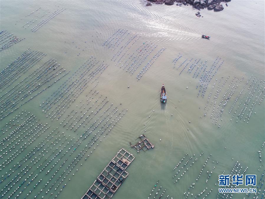 8月19日,空中俯瞰南麂島海域內(nèi)的“海上牧場(chǎng)”養(yǎng)殖區(qū)(無(wú)人機(jī)拍攝)。進(jìn)入8月,浙江省溫州市平陽(yáng)縣南麂鎮(zhèn)海域上大片的大黃魚(yú)、貽貝等特色海產(chǎn)品養(yǎng)殖區(qū)域迎來(lái)豐收季節(jié),養(yǎng)殖戶們駕駛漁船在養(yǎng)殖區(qū)海域進(jìn)行打撈收獲,在碧海藍(lán)天下構(gòu)成了一幅“海上牧場(chǎng)”的美麗豐收景象。近年來(lái),南麂鎮(zhèn)政府引導(dǎo)漁民養(yǎng)殖戶充分發(fā)揮“靠海吃?!钡馁Y源優(yōu)勢(shì),大力發(fā)展海洋養(yǎng)殖經(jīng)濟(jì)和海島旅游經(jīng)濟(jì),實(shí)現(xiàn)了南麂由“生態(tài)美”向“產(chǎn)業(yè)美”,“產(chǎn)業(yè)美”向“經(jīng)濟(jì)美”的轉(zhuǎn)變。同時(shí)該鎮(zhèn)堅(jiān)持以大黃魚(yú)、貽貝等為特色產(chǎn)業(yè)支撐,精準(zhǔn)發(fā)展高效海洋養(yǎng)殖業(yè),重點(diǎn)培養(yǎng)一批新型職業(yè)漁民,依靠專業(yè)技術(shù)支持,實(shí)現(xiàn)深海仿生養(yǎng)殖,讓好生態(tài)造就好品質(zhì),重點(diǎn)打造南麂養(yǎng)殖品牌,組建營(yíng)銷網(wǎng)絡(luò),拓展特色海產(chǎn)品市場(chǎng)。新華社記者 徐昱攝