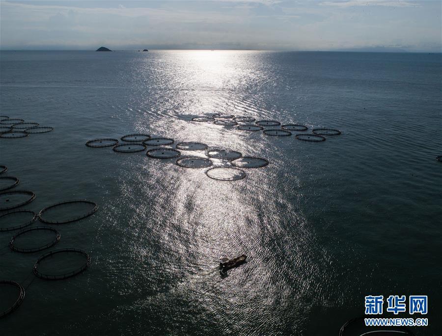 8月18日,漁船行駛在南麂島馬祖岙海域內(nèi)的“海上牧場”大黃魚養(yǎng)殖區(qū)(無人機(jī)拍攝)。進(jìn)入8月,浙江省溫州市平陽縣南麂鎮(zhèn)海域上大片的大黃魚、貽貝等特色海產(chǎn)品養(yǎng)殖區(qū)域迎來豐收季節(jié),養(yǎng)殖戶們駕駛漁船在養(yǎng)殖區(qū)海域進(jìn)行打撈收獲,在碧海藍(lán)天下構(gòu)成了一幅“海上牧場”的美麗豐收景象。近年來,南麂鎮(zhèn)政府引導(dǎo)漁民養(yǎng)殖戶充分發(fā)揮“靠海吃?!钡馁Y源優(yōu)勢,大力發(fā)展海洋養(yǎng)殖經(jīng)濟(jì)和海島旅游經(jīng)濟(jì),實(shí)現(xiàn)了南麂由“生態(tài)美”向“產(chǎn)業(yè)美”,“產(chǎn)業(yè)美”向“經(jīng)濟(jì)美”的轉(zhuǎn)變。同時(shí)該鎮(zhèn)堅(jiān)持以大黃魚、貽貝等為特色產(chǎn)業(yè)支撐,精準(zhǔn)發(fā)展高效海洋養(yǎng)殖業(yè),重點(diǎn)培養(yǎng)一批新型職業(yè)漁民,依靠專業(yè)技術(shù)支持,實(shí)現(xiàn)深海仿生養(yǎng)殖,讓好生態(tài)造就好品質(zhì),重點(diǎn)打造南麂養(yǎng)殖品牌,組建營銷網(wǎng)絡(luò),拓展特色海產(chǎn)品市場。新華社記者 徐昱攝