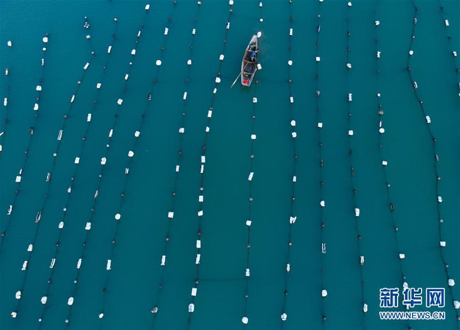 8月18日,南麂島海域的“海上牧場”養(yǎng)殖區(qū)內(nèi),漁民準(zhǔn)備進(jìn)行養(yǎng)殖作業(yè)(無人機(jī)拍攝)。進(jìn)入8月,浙江省溫州市平陽縣南麂鎮(zhèn)海域上大片的大黃魚、貽貝等特色海產(chǎn)品養(yǎng)殖區(qū)域迎來豐收季節(jié),養(yǎng)殖戶們駕駛漁船在養(yǎng)殖區(qū)海域進(jìn)行打撈收獲,在碧海藍(lán)天下構(gòu)成了一幅“海上牧場”的美麗豐收景象。近年來,南麂鎮(zhèn)政府引導(dǎo)漁民養(yǎng)殖戶充分發(fā)揮“靠海吃?!钡馁Y源優(yōu)勢,大力發(fā)展海洋養(yǎng)殖經(jīng)濟(jì)和海島旅游經(jīng)濟(jì),實現(xiàn)了南麂由“生態(tài)美”向“產(chǎn)業(yè)美”,“產(chǎn)業(yè)美”向“經(jīng)濟(jì)美”的轉(zhuǎn)變。同時該鎮(zhèn)堅持以大黃魚、貽貝等為特色產(chǎn)業(yè)支撐,精準(zhǔn)發(fā)展高效海洋養(yǎng)殖業(yè),重點培養(yǎng)一批新型職業(yè)漁民,依靠專業(yè)技術(shù)支持,實現(xiàn)深海仿生養(yǎng)殖,讓好生態(tài)造就好品質(zhì),重點打造南麂養(yǎng)殖品牌,組建營銷網(wǎng)絡(luò),拓展特色海產(chǎn)品市場。新華社記者 徐昱攝