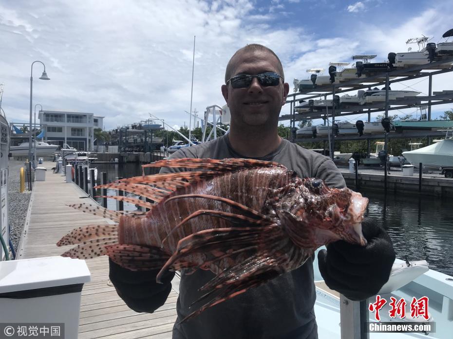 8月21日訊(具體拍攝時間不詳),近日,來自長島的Timothy Blasko打破了記錄,他捕獲了大西洋最重的獅子魚。37歲的Timothy Blasko是一名技術(shù)精湛的捕魚者,當天,他和朋友們在佛羅里達群島伊斯拉莫拉達海岸捕魚時,遇到了這條大魚。Timothy向朋友要來了魚叉,瞄準大魚的下方位置叉去,正中目標成功捕獲。當他們把這條魚和當天捕獲的其它魚排在一起時,他們猜測這條魚可能會破紀錄?!八喼笔仟{子魚中的哥斯拉!” Timothy描述道,“這條巨大的獅子魚重達3.1磅,刷新了大西洋迄今最重獅子魚的國家紀錄。”圖片來源:視覺中國
