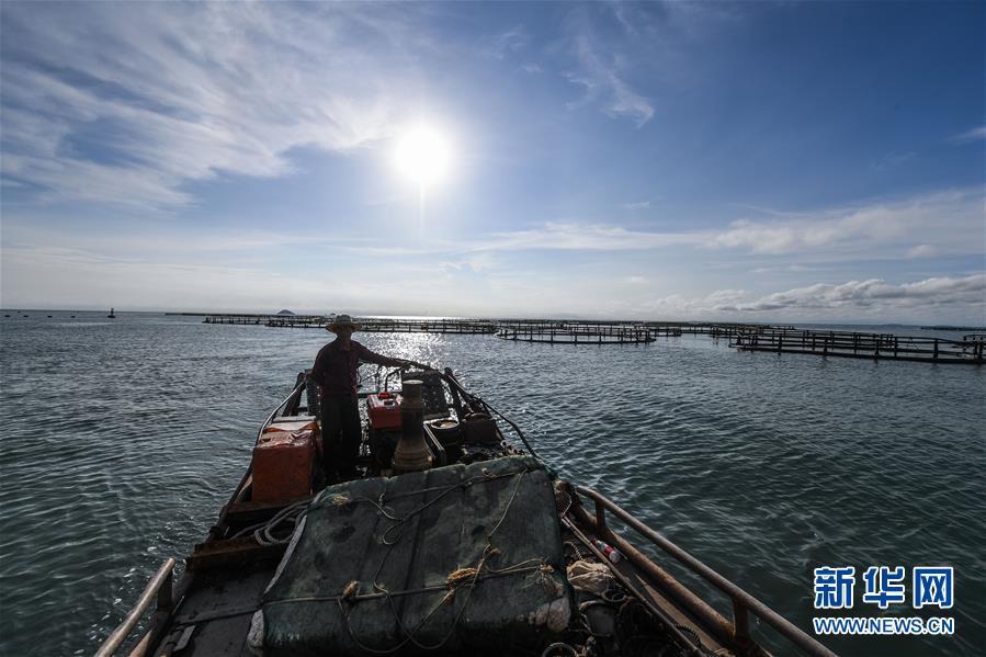 8月18日,南麂島海域的“海上牧場”養(yǎng)殖區(qū)內,漁民駕駛漁船進行養(yǎng)殖作業(yè)。進入8月,浙江省溫州市平陽縣南麂鎮(zhèn)海域上大片的大黃魚、貽貝等特色海產品養(yǎng)殖區(qū)域迎來豐收季節(jié),養(yǎng)殖戶們駕駛漁船在養(yǎng)殖區(qū)海域進行打撈收獲,在碧海藍天下構成了一幅“海上牧場”的美麗豐收景象。近年來,南麂鎮(zhèn)政府引導漁民養(yǎng)殖戶充分發(fā)揮“靠海吃?!钡馁Y源優(yōu)勢,大力發(fā)展海洋養(yǎng)殖經濟和海島旅游經濟,實現了南麂由“生態(tài)美”向“產業(yè)美”,“產業(yè)美”向“經濟美”的轉變。同時該鎮(zhèn)堅持以大黃魚、貽貝等為特色產業(yè)支撐,精準發(fā)展高效海洋養(yǎng)殖業(yè),重點培養(yǎng)一批新型職業(yè)漁民,依靠專業(yè)技術支持,實現深海仿生養(yǎng)殖,讓好生態(tài)造就好品質,重點打造南麂養(yǎng)殖品牌,組建營銷網絡,拓展特色海產品市場。新華社記者 徐昱攝