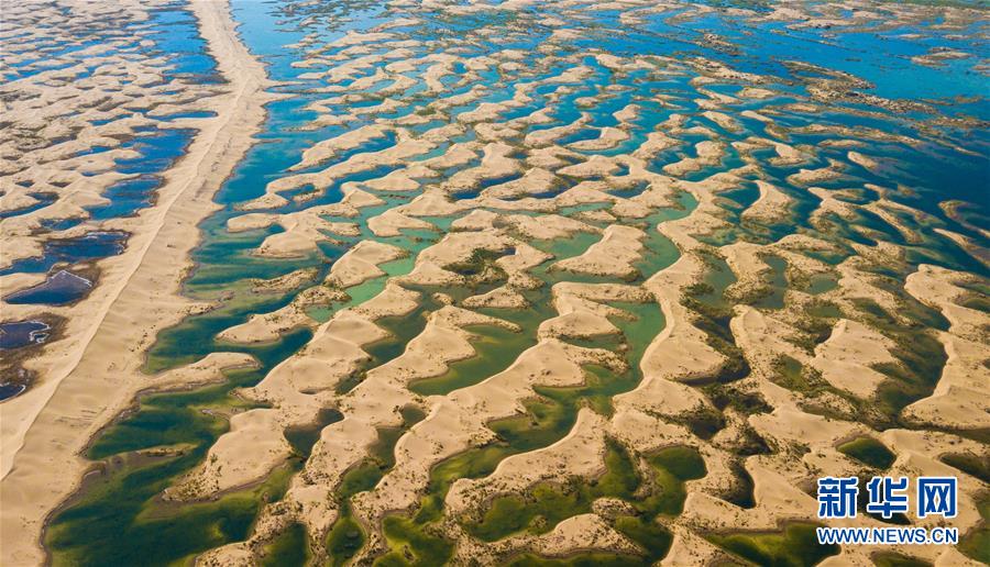 內(nèi)蒙古杭錦旗在黃河凌汛期向沙漠引水,讓水患變水利,沙地變濕地,庫布其沙漠北緣顯現(xiàn)出“水沙共存”美景(8月1日無人機(jī)拍攝)。 庫布其沙漠位于鄂爾多斯高原北部邊緣、黃河南岸,總面積1.86萬平方公里,是我國第七大沙漠。這里曾經(jīng)寸草不生,風(fēng)沙肆虐。經(jīng)過幾代庫布其人的艱苦奮斗和科學(xué)創(chuàng)新,庫布其沙漠治理成效顯著,生態(tài)環(huán)境明顯改善,治理面積達(dá)6460平方公里,綠化面積3200多平方公里。 新華社記者邢廣利攝