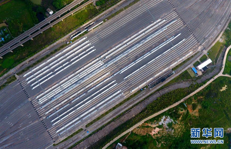 這是廣西南寧動(dòng)車所內(nèi)準(zhǔn)備發(fā)往各地的動(dòng)車組列車(7月1日無(wú)人機(jī)拍攝)。 廣西壯族自治區(qū)成立60年來(lái),鐵路建設(shè)發(fā)生翻天覆地的變化。來(lái)自中國(guó)鐵路南寧局集團(tuán)有限公司的數(shù)據(jù)顯示,1958年廣西鐵路總里程為1346.3公里,如今廣西鐵路總里程達(dá)5191公里。廣西與周邊相鄰省份間實(shí)現(xiàn)動(dòng)車“公交化”開(kāi)行。此外,北部灣港—重慶班列、東盟海產(chǎn)品冷鏈班列、“百色一號(hào)”果蔬專列等的開(kāi)通和運(yùn)營(yíng),強(qiáng)化了鐵路供給的針對(duì)性和有效性。鐵路成為助推廣西經(jīng)濟(jì)社會(huì)快速發(fā)展的“大動(dòng)脈”。 新華社記者黃孝邦攝