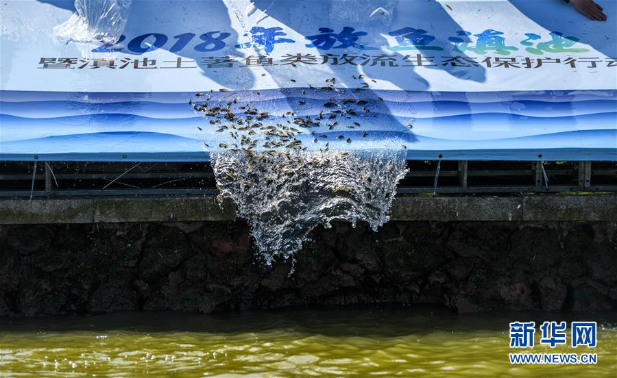 當日,“2018放魚滇池暨滇池土著魚類放流生態(tài)保護行動”在昆明滇池湖畔舉行,包括20萬尾滇池金線鲃、云南光唇魚在內的滇池土著魚類以及5萬余尾鰱、鳙魚在滇池放流。 據統計,滇池最多的時候生活著24種土著魚,目前除了銀白魚自然存在外,2010年實現了滇池金線鲃的人工增殖放流,2017年又讓云南光唇魚實現了回歸。 新華社記者江文耀攝