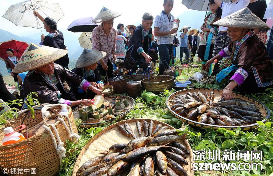2018年11月19日,侗族同胞在參加貴州省從江縣慶云鎮(zhèn)“凍魚節(jié)”祭薩儀式。 據(jù)了解,“凍魚節(jié)”是當?shù)亍笆稀倍弊逋赜械募漓雮鹘y(tǒng)節(jié)日,定在每年農歷的10月12日,是人們紀念祖先遷徙而舉辦的規(guī)模盛大的節(jié)日,至今已有500多年的歷史。節(jié)日期間,主人邀請親友聚餐、參與慶?;顒樱蚕碡S收喜悅。