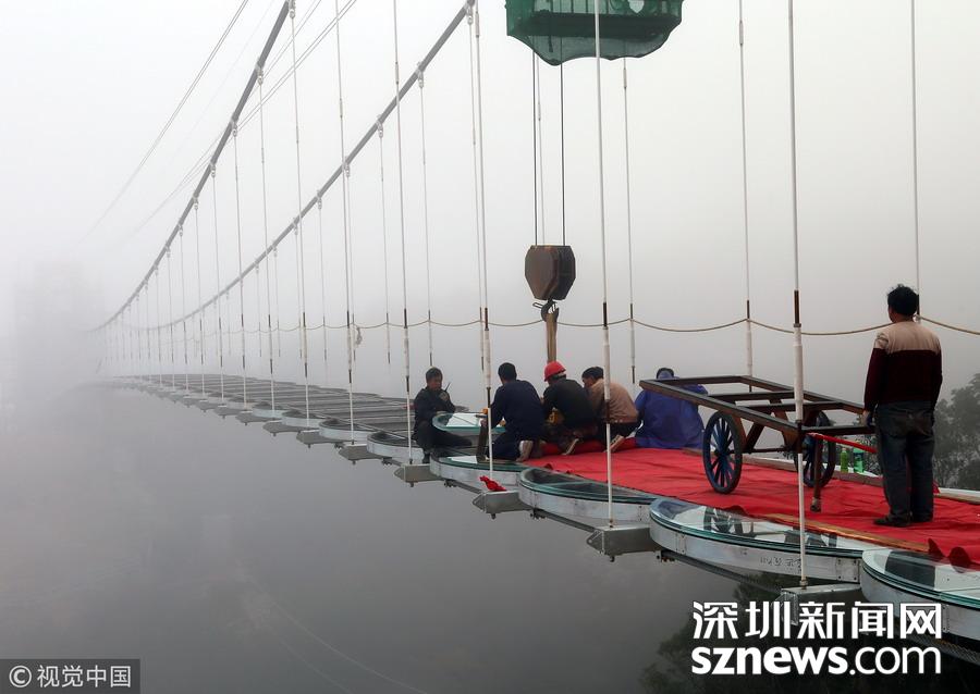 恐高勿進(jìn)!玻璃橋這樣鋪成!