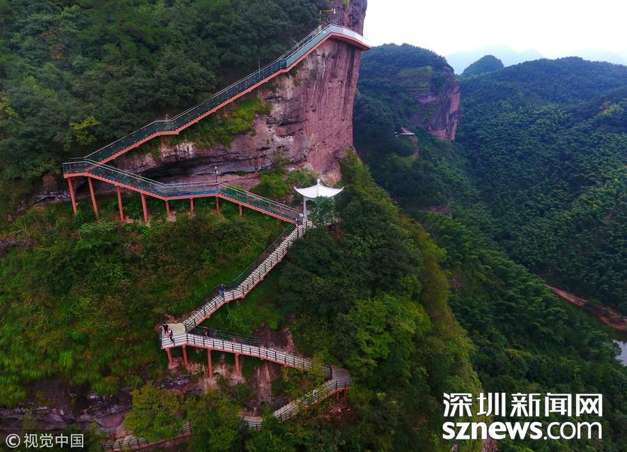 武義縣大紅巖景區(qū)在227500平方懸崖上建造的玻璃桟道,通過有關(guān)部驗收,10月1日將開放接待游客。武義縣大紅巖是國家級風景名勝區(qū),今年景區(qū)利用長650米、高350米的懸崖峭壁建造玻璃桟道,為景區(qū)又增添了一道壯觀的景點。