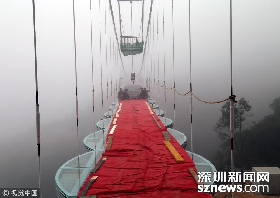 恐高勿進(jìn)!玻璃橋這樣鋪成!