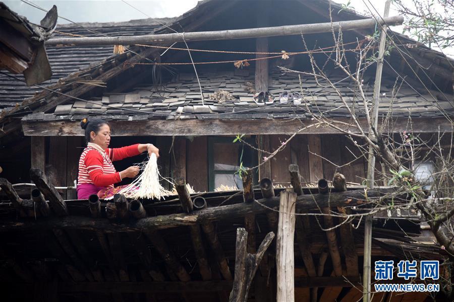 12月4日,在云南省瀾滄拉祜族自治縣酒井鄉(xiāng)勐根村老達保寨,村民在露臺上做農(nóng)活。 新華社記者張瑞琪攝