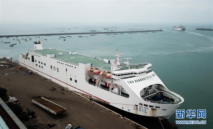 ??吭诤?谀细鄞a頭的粵海鐵4號(hào)客滾船(1月15日無人機(jī)拍攝)。新華社記者 楊冠宇 攝
