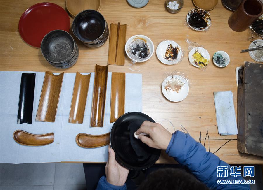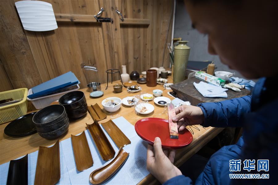 1月15日,吳榮強在龍泉市牛頭嶺村“七分醉”工作室制作漆器。新華社記者翁忻旸攝