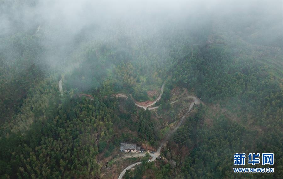 位于龍泉市牛頭嶺村群山之中的“七分醉”工作室(1月15日無人機拍攝)。 新華社記者翁忻旸攝