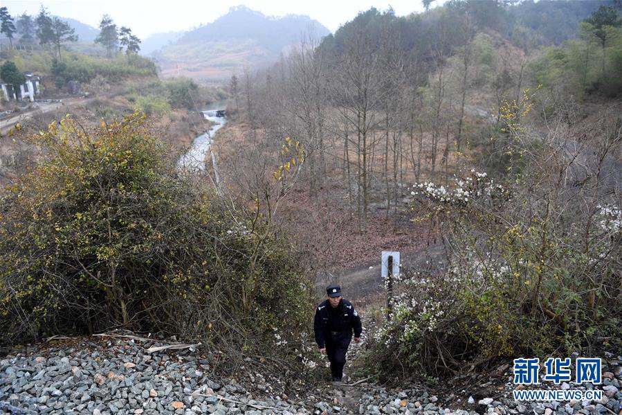 1月16日,汪茂才一早搭乘鐵路通勤車前往十公里外的三昆站,然后往回徒步巡查鐵路線。 今年52歲的汪茂才是合肥鐵路公安處黃山站派出所歙縣警務(wù)室的一名線路民警,他所在的警務(wù)室負(fù)責(zé)皖南山區(qū)皖贛鐵路線約80公里范圍內(nèi)的線路安全。從警30年來,線路巡查、鐵路安全知識(shí)宣傳等是汪茂才的日常工作。多年來的徒步巡線,讓汪茂才練就了一雙快腿,十公里的路,汪茂才兩個(gè)小時(shí)就能走完。 汪茂才負(fù)責(zé)的鐵路沿線周邊村莊較多,很多房子都是沿鐵路線而建,有些村民為了圖方便,違規(guī)穿越鐵路線。加強(qiáng)對(duì)鐵路沿線居民的安全宣傳教育,成為汪茂才的一項(xiàng)重要工作,沿線村民的安全意識(shí)也越來越高。 對(duì)汪茂才這樣的線路民警來說,大多數(shù)時(shí)候都是“獨(dú)行俠”,“當(dāng)線路民警就要耐得住寂寞,守得住孤獨(dú),與大山為伴,與線路為友,盡己所能,為鐵路安全運(yùn)行保駕護(hù)航?!蓖裘耪f。 新華社記者劉軍喜攝
