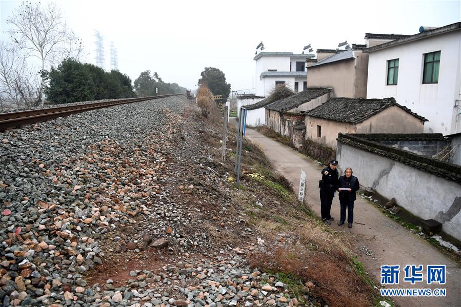 1月16日,汪茂才向鐵路沿線村民宣傳鐵路安全知識(shí)。 今年52歲的汪茂才是合肥鐵路公安處黃山站派出所歙縣警務(wù)室的一名線路民警,他所在的警務(wù)室負(fù)責(zé)皖南山區(qū)皖贛鐵路線約80公里范圍內(nèi)的線路安全。從警30年來,線路巡查、鐵路安全知識(shí)宣傳等是汪茂才的日常工作。多年來的徒步巡線,讓汪茂才練就了一雙快腿,十公里的路,汪茂才兩個(gè)小時(shí)就能走完。 汪茂才負(fù)責(zé)的鐵路沿線周邊村莊較多,很多房子都是沿鐵路線而建,有些村民為了圖方便,違規(guī)穿越鐵路線。加強(qiáng)對(duì)鐵路沿線居民的安全宣傳教育,成為汪茂才的一項(xiàng)重要工作,沿線村民的安全意識(shí)也越來越高。 對(duì)汪茂才這樣的線路民警來說,大多數(shù)時(shí)候都是“獨(dú)行俠”,“當(dāng)線路民警就要耐得住寂寞,守得住孤獨(dú),與大山為伴,與線路為友,盡己所能,為鐵路安全運(yùn)行保駕護(hù)航?!蓖裘耪f。 新華社記者劉軍喜攝