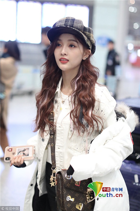 2019年1月17日,北京,吳宣儀現(xiàn)身機場。當(dāng)晚她不懼低溫輕裝亮相提前過春天,青春裝扮甜美又時尚。吳宣儀側(cè)顏精致紅唇吸睛,還被抓拍到撅嘴賣萌一臉無辜的表情。