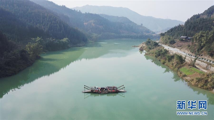 1月22日,渡輪在都柳江上行進(無人機航拍)。 新華社記者 歐東衢 攝