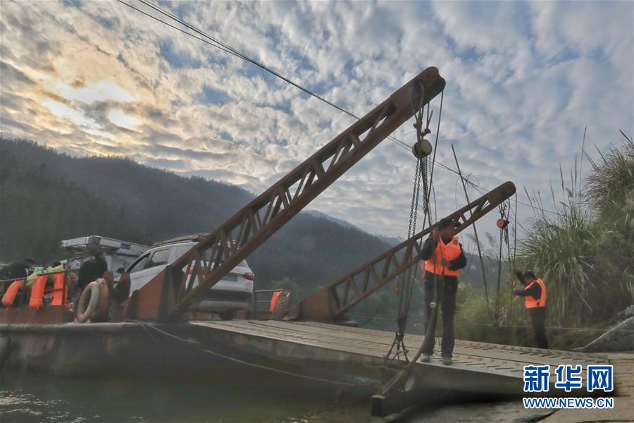 1月22日,何銀祥(前)和賴福昌在調(diào)整船板高度。 新華社記者 歐東衢 攝
