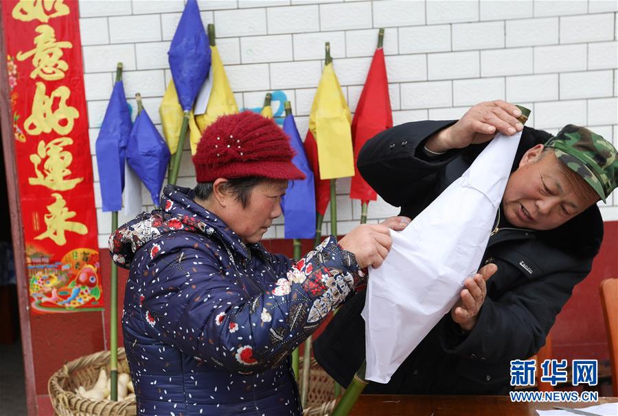 2月18日,在四川省南充市嘉陵區(qū)金寶鎮(zhèn)和祥社區(qū),65歲的李樹(shù)會(huì)(右)和老伴制作“蠐蟆燈”。 當(dāng)日是農(nóng)歷正月十四,夜幕降臨后,川渝等地?cái)?shù)萬(wàn)名群眾在四川省南充市嘉陵區(qū)金寶鎮(zhèn)匯聚,點(diǎn)亮“蠐蟆燈”,敲著鑼鼓唱著歌謠,將“蠐蟆”送到幾公里外的田邊或者河邊燒掉,祈福健康平安。星星點(diǎn)點(diǎn)的燈光在鄉(xiāng)間小路閃爍移動(dòng),場(chǎng)面壯觀熱烈。 “送蠐蟆”祈福這一習(xí)俗源于清朝,歷經(jīng)演變成為川東北地區(qū)一個(gè)古老而神秘的地方民俗節(jié)日。 新華社記者 江宏景 攝