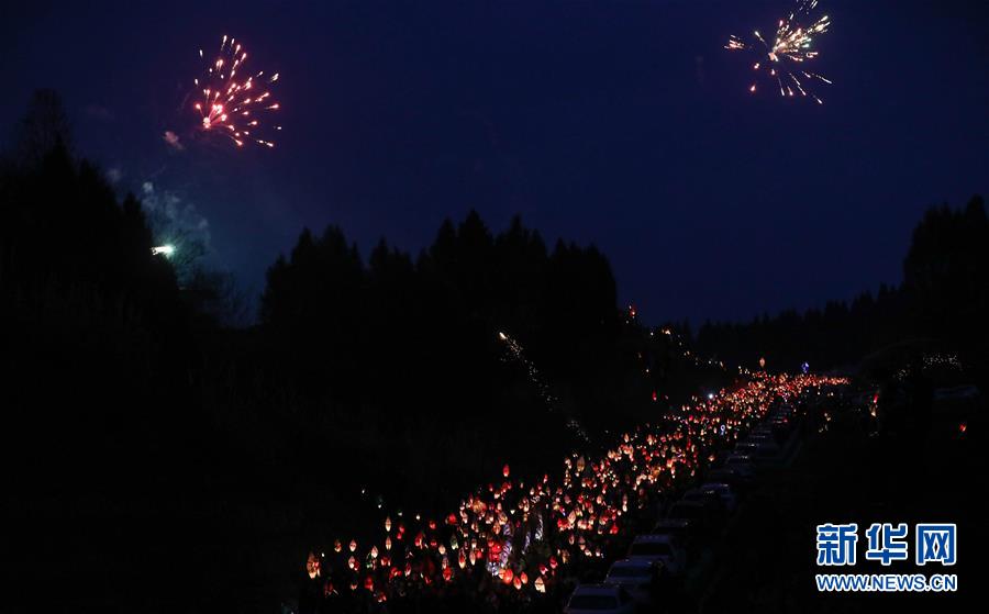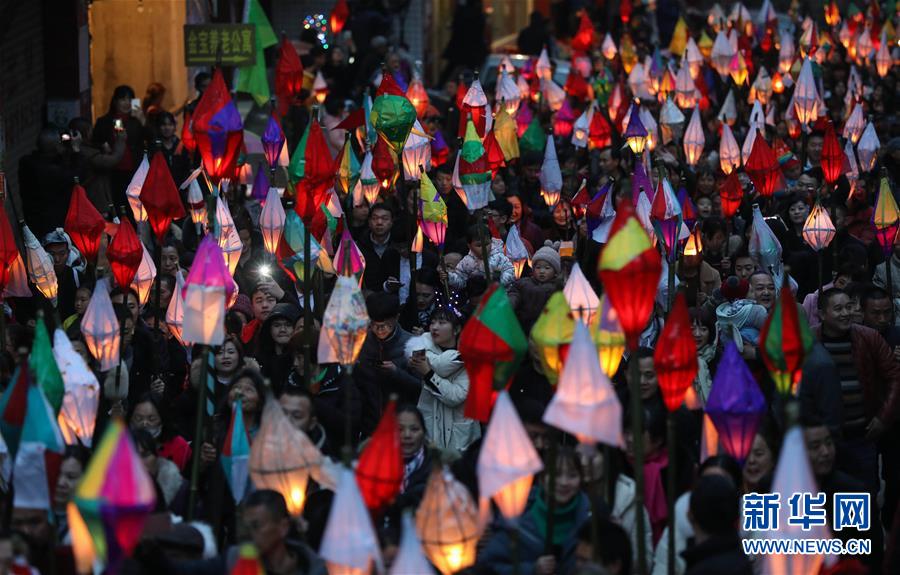 2月18日,群眾在四川省南充市嘉陵區(qū)金寶鎮(zhèn)點(diǎn)亮“蠐蟆燈”。 當(dāng)日是農(nóng)歷正月十四,夜幕降臨后,川渝等地?cái)?shù)萬(wàn)名群眾在四川省南充市嘉陵區(qū)金寶鎮(zhèn)匯聚,點(diǎn)亮“蠐蟆燈”,敲著鑼鼓唱著歌謠,將“蠐蟆”送到幾公里外的田邊或者河邊燒掉,祈福健康平安。星星點(diǎn)點(diǎn)的燈光在鄉(xiāng)間小路閃爍移動(dòng),場(chǎng)面壯觀熱烈。 “送蠐蟆”祈福這一習(xí)俗源于清朝,歷經(jīng)演變成為川東北地區(qū)一個(gè)古老而神秘的地方民俗節(jié)日。 新華社記者 江宏景 攝