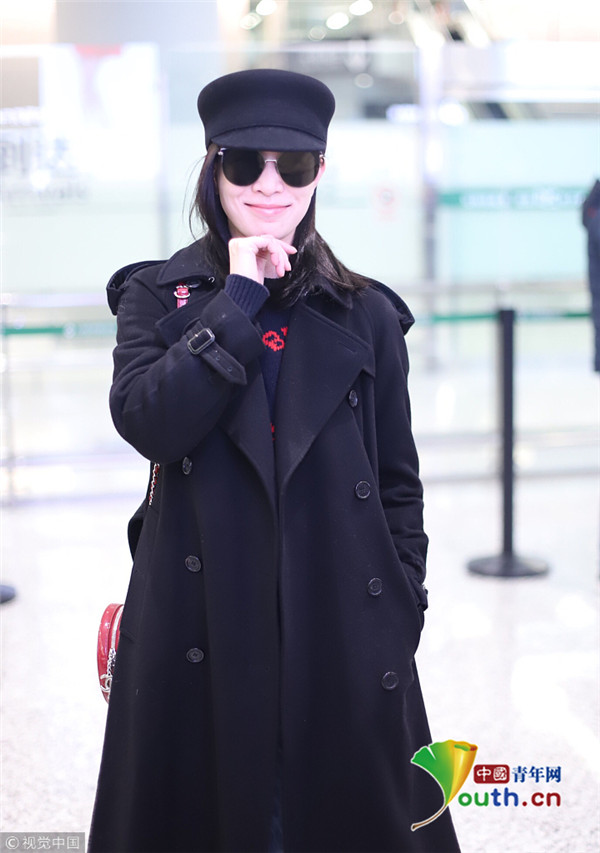 2019年2月28日,上海,佘詩曼現(xiàn)身機場。她頭戴禮帽,身穿黑色大衣走路帶風氣場強,單手托腮甜笑瞬間暖人心。