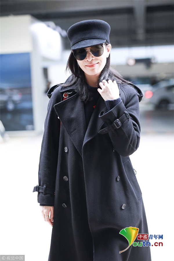 2019年2月28日,上海,佘詩(shī)曼現(xiàn)身機(jī)場(chǎng)。她頭戴禮帽,身穿黑色大衣走路帶風(fēng)氣場(chǎng)強(qiáng),單手托腮甜笑瞬間暖人心。