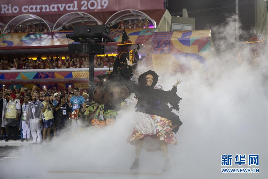 3月3日,在巴西里約熱內(nèi)盧,特級(jí)組桑巴舞校演員參加狂歡節(jié)游行。 3月3日晚,2019年里約熱內(nèi)盧狂歡節(jié)特級(jí)組桑巴舞校在桑巴大道開始花車巡游表演。 新華社記者李明攝