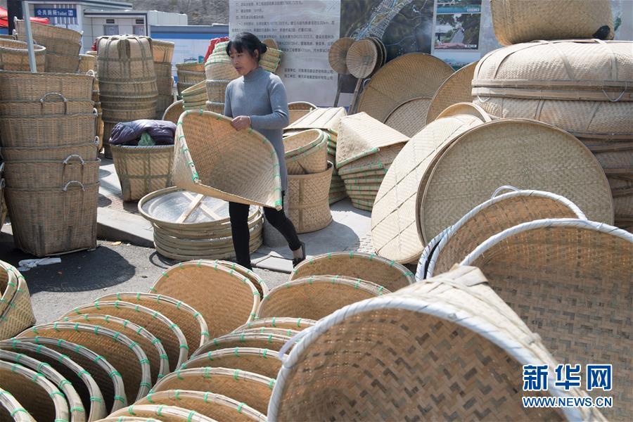 3月12日,人們在福建武夷山“柴頭會”上采購傳統(tǒng)竹制品。