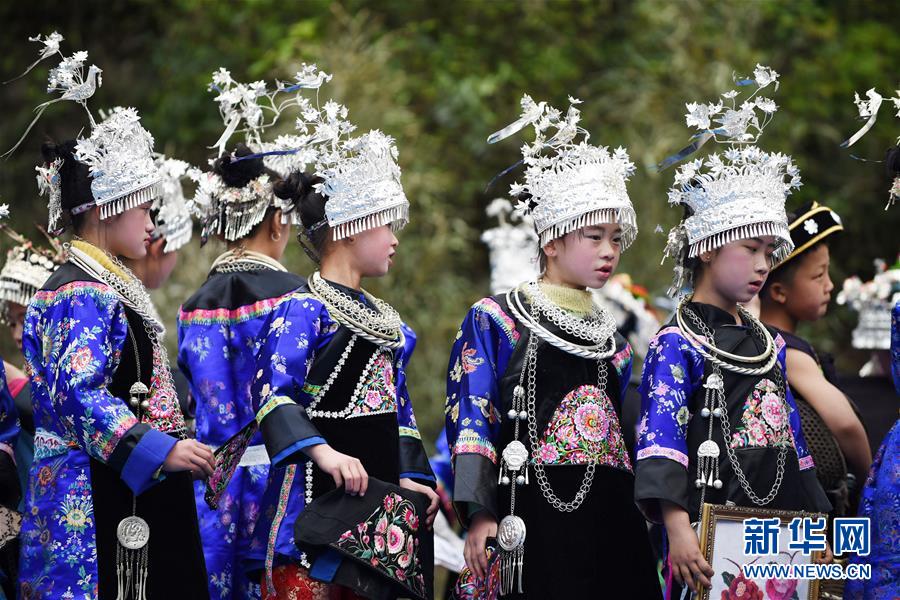 苗族女孩盛裝參加“三月三”非遺手工藝展演活動(dòng)(4月6日攝)。4月6日至7日,在貴州省黔東南苗族侗族自治州劍河縣觀么鎮(zhèn)新民村和新合村,來自劍河縣和三穗縣的苗族同胞歡聚一堂,通過民族歌舞展演、非遺手工藝展示、千戶祭“巫耶”、跳蘆笙舞等形式,與來賓一起歡慶2019年高雍苗族“三月三”民俗文化節(jié)。 新華社記者 楊文斌 攝