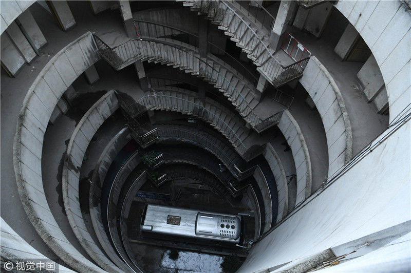 2018年12月6日,重慶江北紅旗河溝汽車站內(nèi),有一棟獨(dú)特的八層圓環(huán)狀建筑,底層每天有不少進(jìn)出站的客車通行。