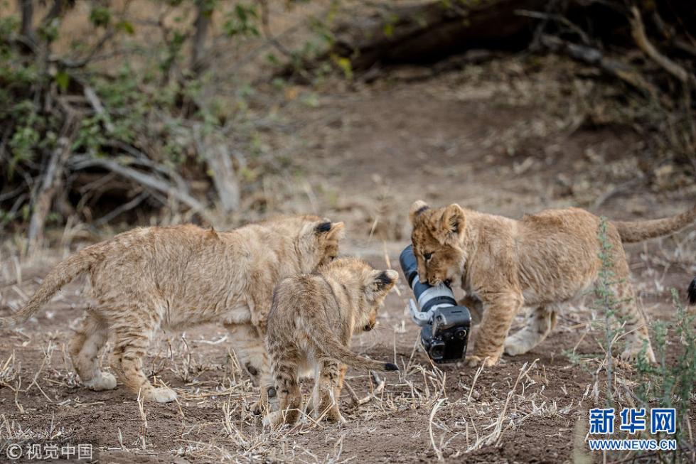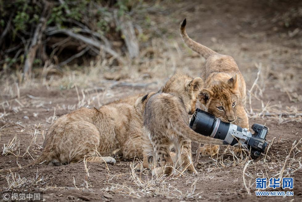 近日,非洲博茨瓦納馬沙圖野生動物保護區(qū)內一頭獅子叼起攝影師掉落在地上的相機,之后還將相機交給小獅子們玩耍,看起來十分好奇,而攝影師非常無奈。現(xiàn)年57歲的叢林探險家Barbara Jensen Vorster在一輛越野車上為馬沙圖野生動物保護區(qū)的獅群拍照時,相機不小心掉到了地上。砰的一聲響驚動了母獅子,它向攝影師方向移動,迫使探險隊撤退。(圖片來源:視覺中國)