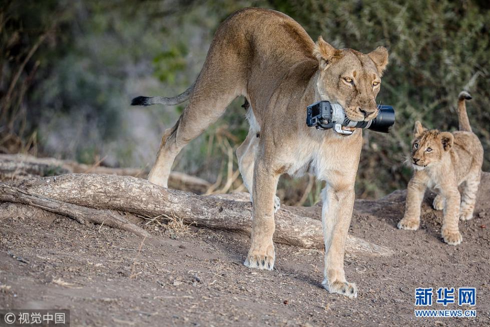 近日,非洲博茨瓦納馬沙圖野生動物保護區(qū)內一頭獅子叼起攝影師掉落在地上的相機,之后還將相機交給小獅子們玩耍,看起來十分好奇,而攝影師非常無奈?,F(xiàn)年57歲的叢林探險家Barbara Jensen Vorster在一輛越野車上為馬沙圖野生動物保護區(qū)的獅群拍照時,相機不小心掉到了地上。砰的一聲響驚動了母獅子,它向攝影師方向移動,迫使探險隊撤退。(圖片來源:視覺中國)