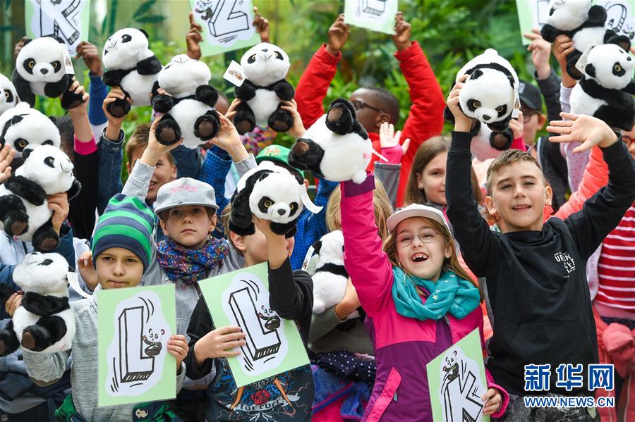 5月20日,在奧地利維也納,小朋友們在美泉宮動物園歡迎大熊貓“園園”。 當日,來自中國的雄性大熊貓“園園”正式亮相奧地利維也納美泉宮動物園。大熊貓“園園”于4月16日抵達維也納,一直處于隔離狀態(tài)。“園園”將與2003年來到美泉宮動物園的雌性大熊貓“陽陽”一起生活。 新華社記者 郭晨 攝