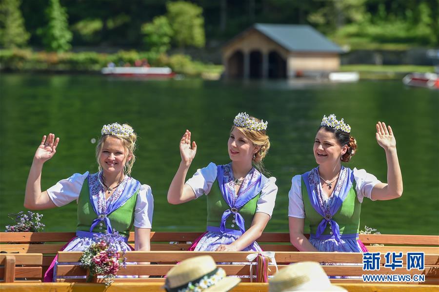 6月2日,在奧地利中部小城巴特奧賽,“水仙皇后”和“水仙公主”參加水上花船巡游。 當日,奧地利第60屆水仙花節(jié)水上巡游活動在中部小城巴特奧賽舉行。一年一度的水仙花節(jié)是奧地利規(guī)模最大的以鮮花為主題的民間節(jié)日,每年吸引大量游客前來。 新華社記者 郭晨 攝