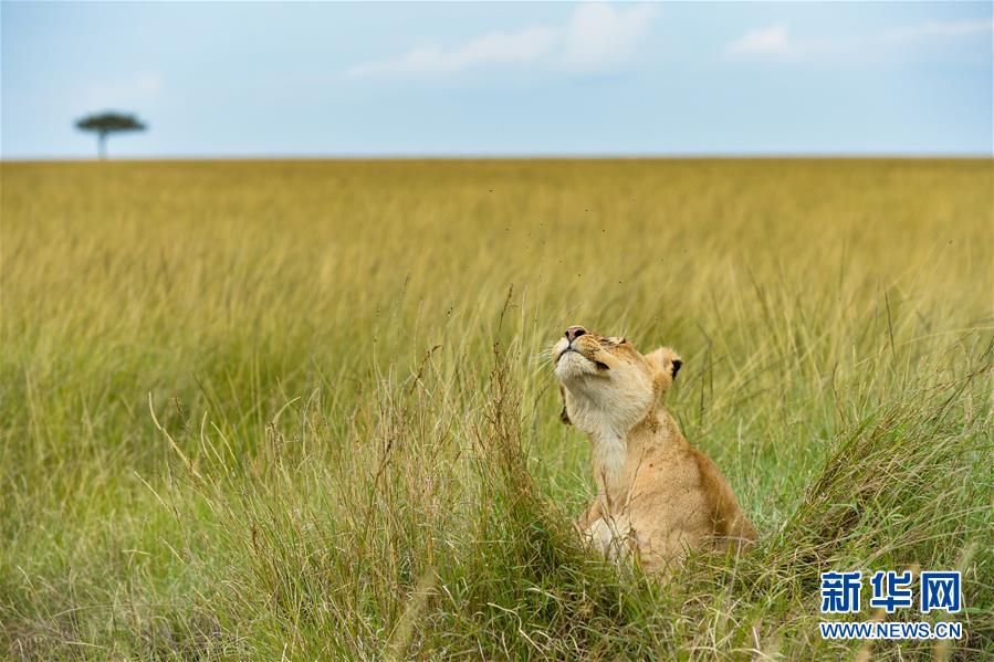 6月17日,在肯尼亞馬賽馬拉國家保護(hù)區(qū),一頭獅子在草叢中。 新華社記者 李琰 攝