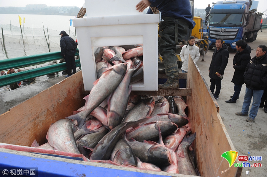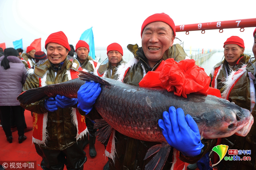 安徽阜陽(yáng):八里河冬捕魚“頭魚”拍出88萬(wàn)元