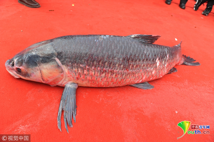 1月6日,安徽省阜陽(yáng)市潁上縣八里河漁場(chǎng)正式開始進(jìn)行冬季大捕魚,捕獲的一條重達(dá)78斤的“頭魚”拍出88萬(wàn)元,現(xiàn)場(chǎng)吸引眾多客商和廣大群眾觀看。據(jù)悉,此次所得拍賣款全部用于當(dāng)?shù)孛撠毠?jiān)。 圖片來(lái)源:視覺(jué)中國(guó)