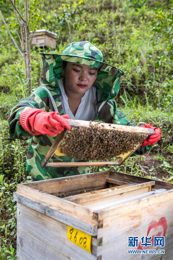 在云南省西盟縣勐梭鎮(zhèn)班母村中華蜂養(yǎng)殖基地,二妹在檢查蜂箱情況(6月16日攝)。 新華社記者 胡超 攝
