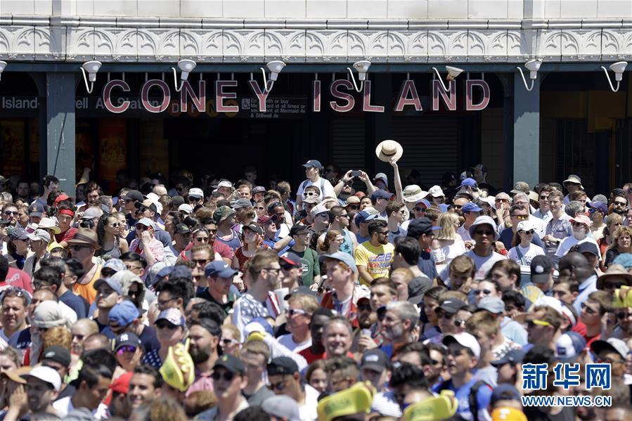 7月4日,在美國紐約康尼島,人們觀看吃熱狗大賽。 當(dāng)日,美國紐約康尼島舉行一年一度的吃熱狗大賽。在男子組比賽中,來自加州的喬伊·切斯特納特10分鐘內(nèi)吃下71個(gè)熱狗衛(wèi)冕成功。在女子組比賽中,三木須藤10分鐘內(nèi)吃下31個(gè)熱狗,連續(xù)第六次贏得冠軍。 新華社記者 李木子 攝