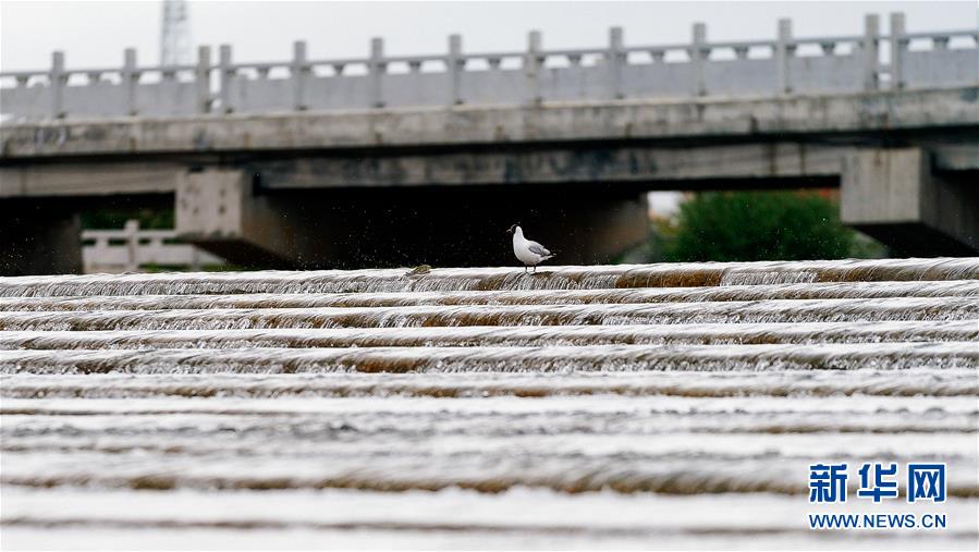 7月6日,青海省剛察縣沙柳河里的湟魚躍起向上洄游。 新華社記者 吳剛攝