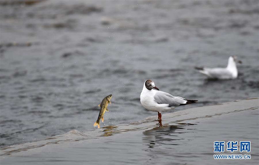7月6日,在青海省剛察縣沙柳河里,一只棕頭鷗“錯(cuò)過(guò)”一條湟魚(yú)。 新華社記者 張宏祥攝