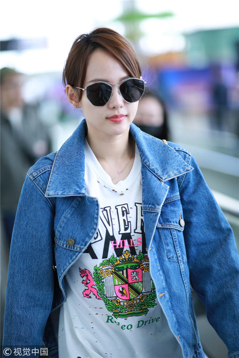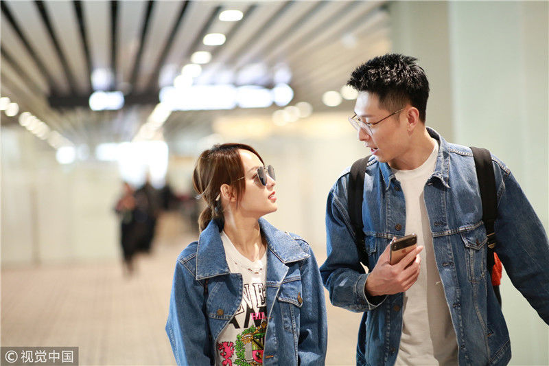 2019年4月1日,張嘉倪與老公買超現(xiàn)身機場,從廣州飛往北京。兩人同穿情侶牛仔裝,一路對視熱聊感情超甜,張嘉倪對鏡頭熱情揮手舉公仔,親和力MAX。匿名/視覺中國編輯/陳進