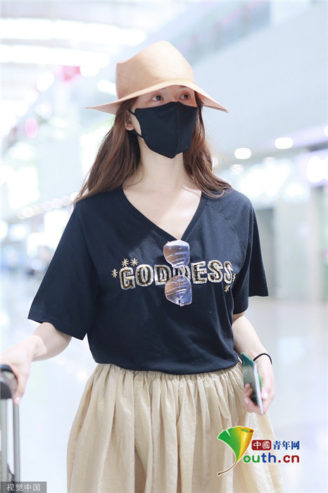 2019年7月23日,上海,林志玲現(xiàn)身機(jī)場,穿著打扮與三天前在臺(tái)北機(jī)場相比毫無變化,依舊身穿黑體恤搭配米色休閑褲,墨鏡也依舊掛在胸前。