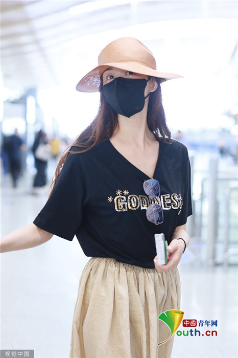 2019年7月23日,上海,林志玲現(xiàn)身機(jī)場(chǎng),穿著打扮與三天前在臺(tái)北機(jī)場(chǎng)相比毫無變化,依舊身穿黑體恤搭配米色休閑褲,墨鏡也依舊掛在胸前。
