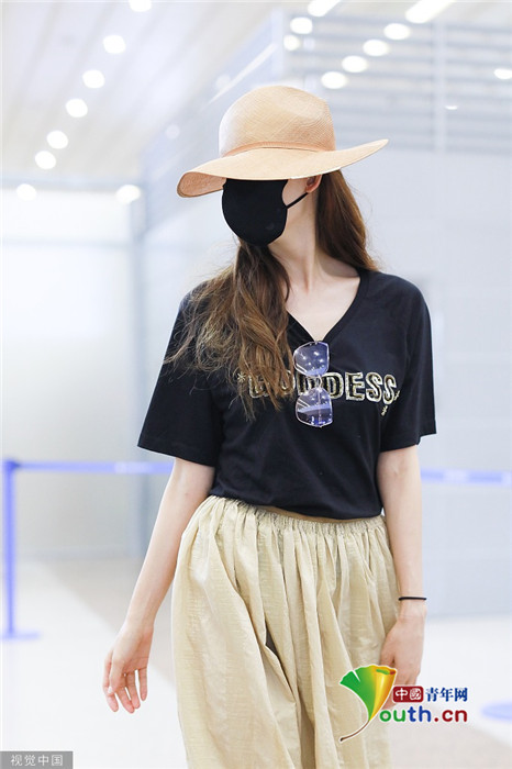 2019年7月23日,上海,林志玲現(xiàn)身機(jī)場(chǎng),穿著打扮與三天前在臺(tái)北機(jī)場(chǎng)相比毫無(wú)變化,依舊身穿黑體恤搭配米色休閑褲,墨鏡也依舊掛在胸前。