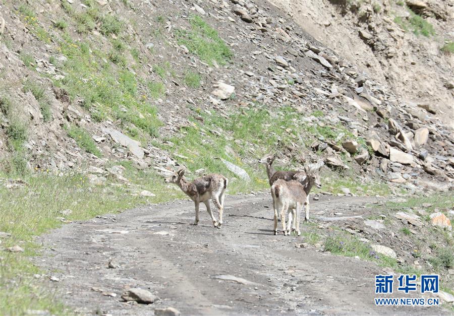 三只巖羊行走在路上(8月14日攝)。 8月12日至14日,來(lái)自全國(guó)各地的31名自然愛(ài)好者聚集在海拔4200米的青海省玉樹(shù)藏族自治州稱多縣嘉塘草原,參加“2019嘉塘自然觀察節(jié)”。自然愛(ài)好者用獨(dú)特視角記錄珍稀野生動(dòng)植物,觀察三江源生態(tài)。 新華社記者 田文杰 攝